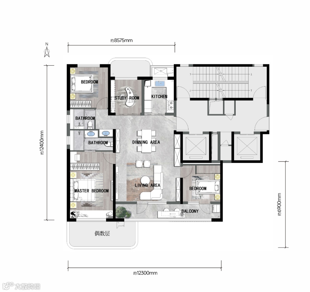 ▲南飞鸿·乐境雅荟-建面约176㎡(偶数层)户型图