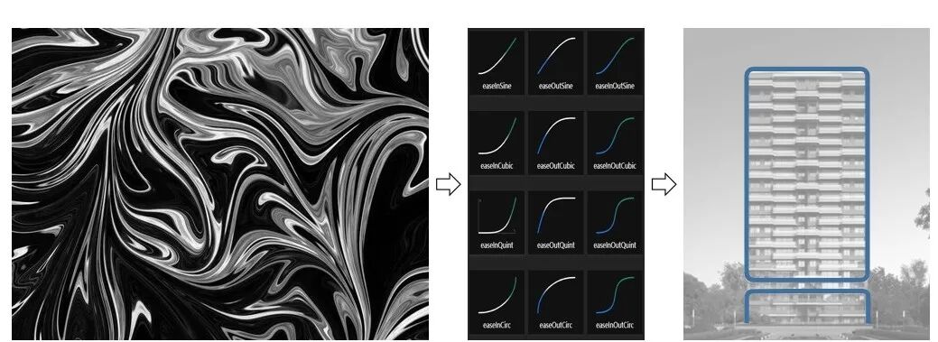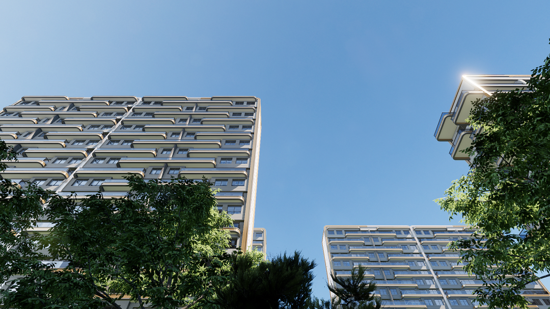 整体建筑形体采用极简的设计语言,强调舒展的横线线条,运用了转角、切割、圆弧等复杂的程序,颠覆传统住宅立面的平铺直叙,玻璃、曲线铝板线条组成灵动的转角阳台,在统一的序列中寻找自然的律动与和谐。