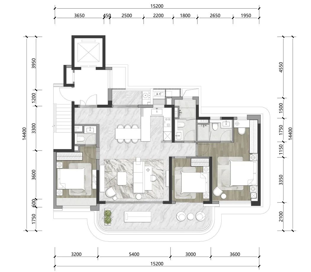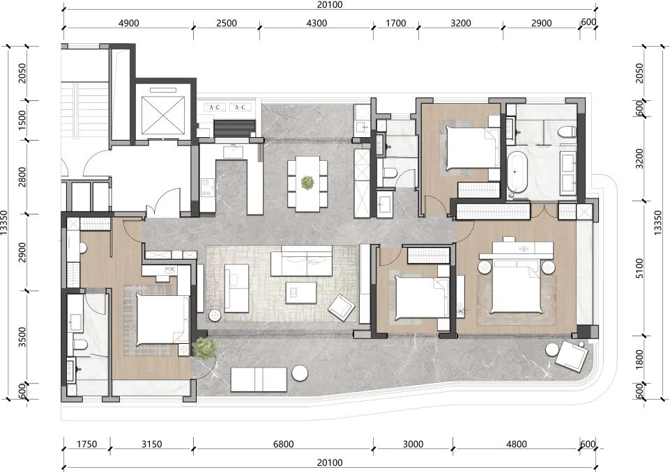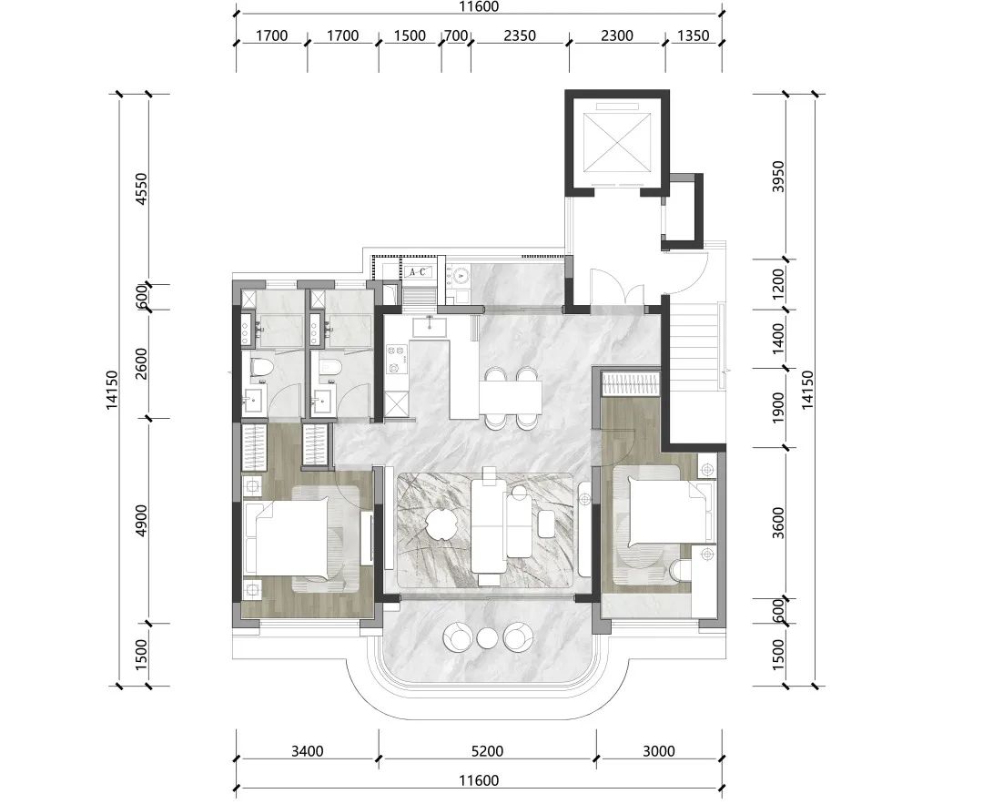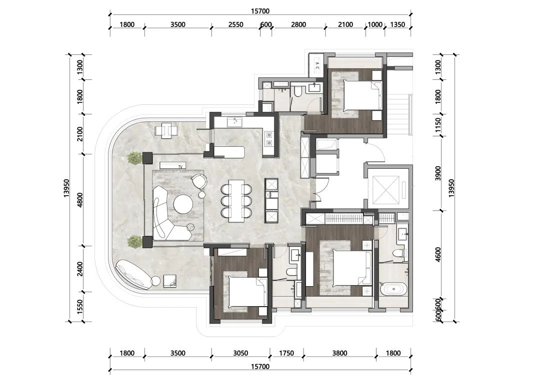 即使是最小的105㎡户型,也充分体现了设计师对度假豪宅家庭关系场的把握。搜建筑