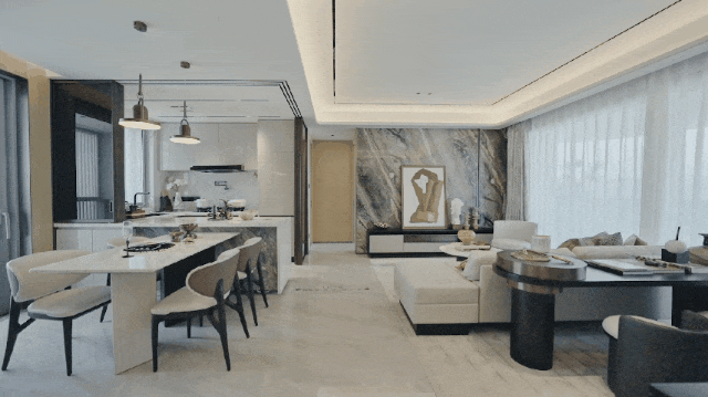 203㎡户型21.5 m长的270°全景阳台,让住户不被时间、空间束缚,在家就能享受三亚的瑰丽山海,这才算是回归了度假的本质。