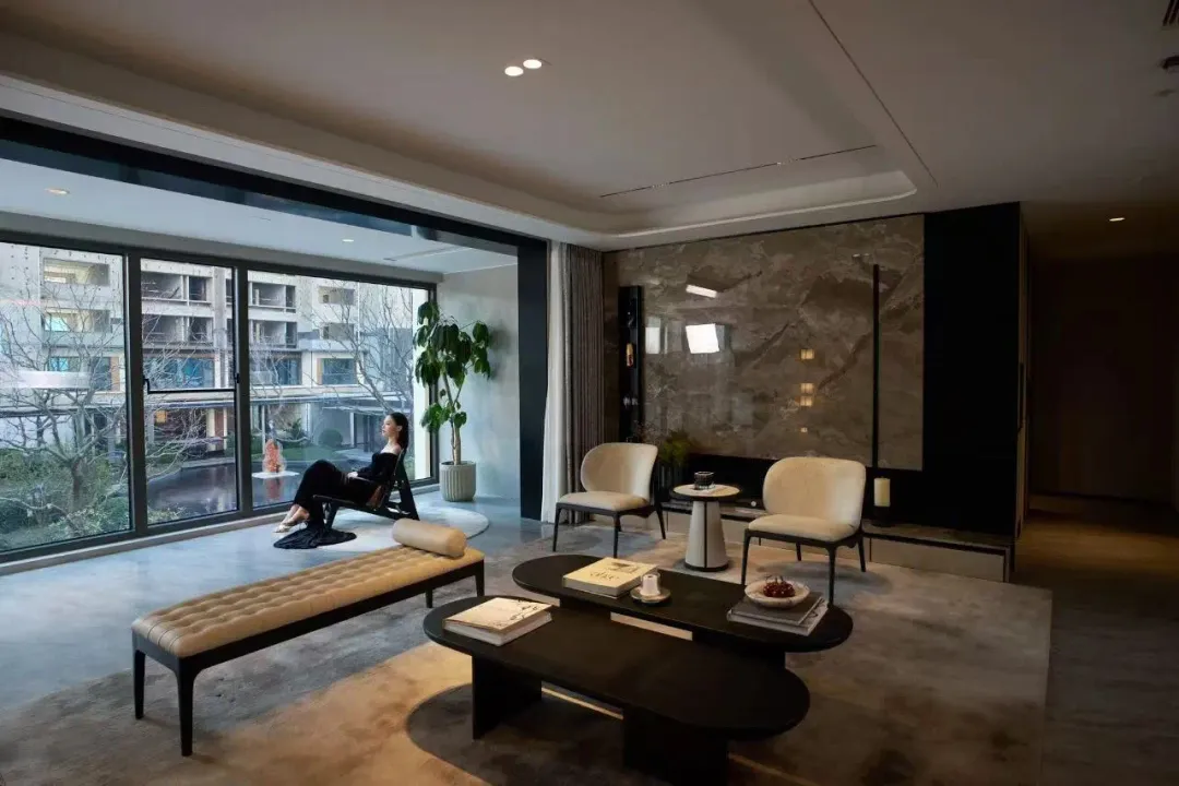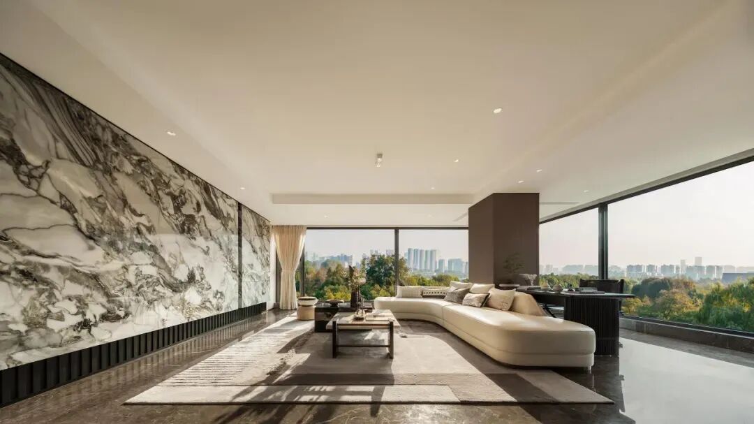 大量哑光的岩板和木饰面系统,不仅创造了统一的空间语言,更还原了自然的温润感。