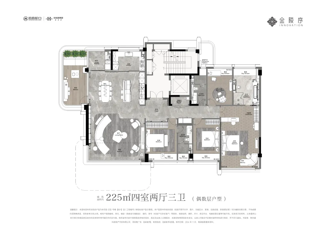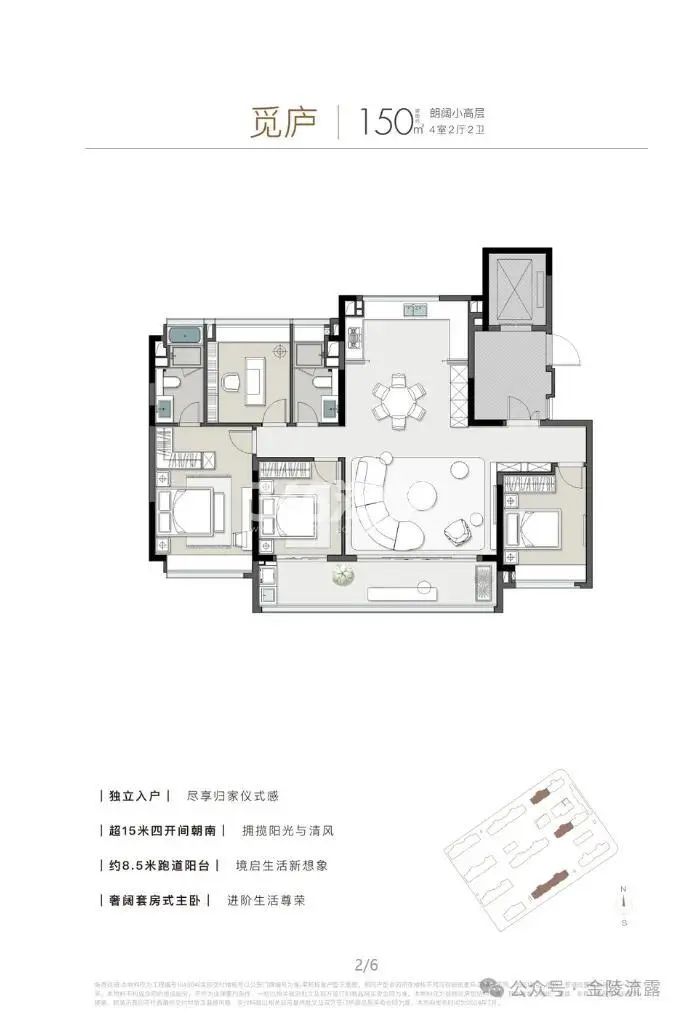 金陵序精心规划七座10至24层的高层住宅,每户建筑空间约为150至175平方米,同时推出面积为约225平方米的精致洋房,满足不同居住需求。