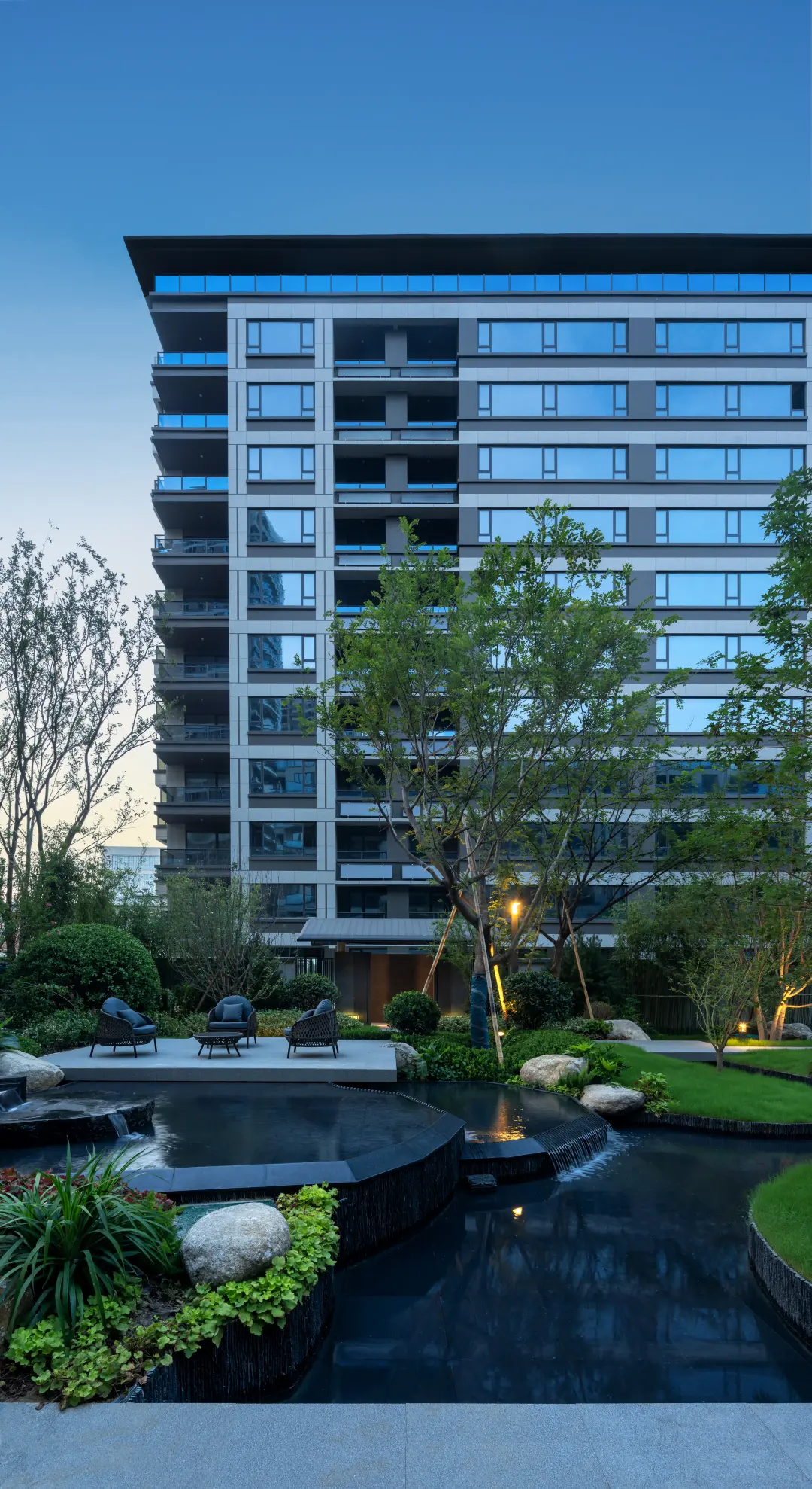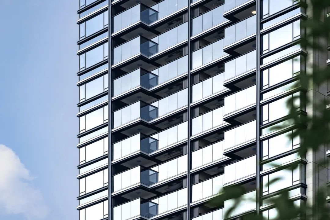 中交·象江来建筑外立面选用了一体化“L”型铝板设计、高耐候的水包水仿石涂料、充满细节的质感涂料、水晶灰LOW-E等,新技术、新材料的搭配使用,形成了新的审美,塑造出全新维度的美学体系。