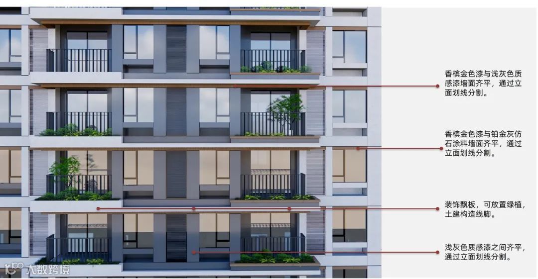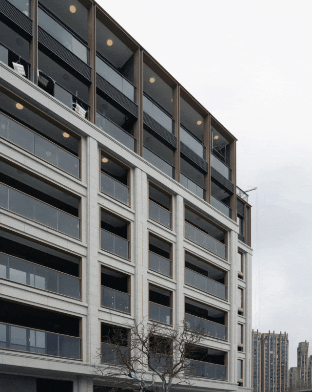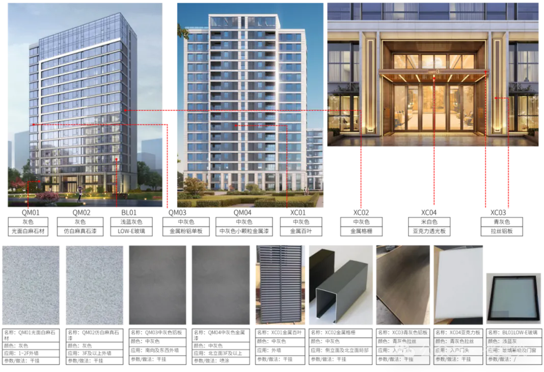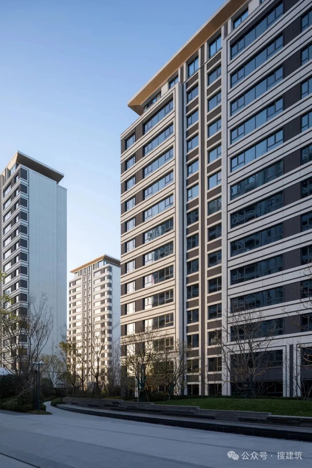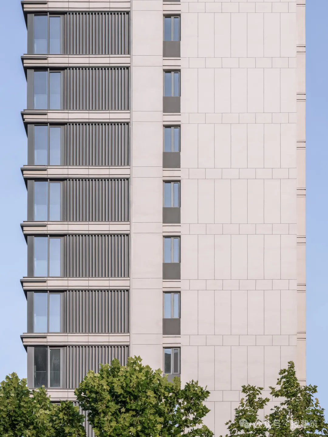 中部标准段打造“普适尺度”,采用仿石材、金属嵌条等,通过对立面规律的分缝设计,提升标准段的品质感与设计感,同时提升材料的耐久度与平整度。