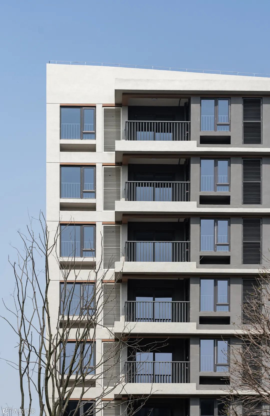 西安中粮·奥体壹号外立面标准段的主材采用了灰白色真石漆与深灰色质感涂料的组合,互为调和,通过深与浅形成的虚实对比达成达成清晰明确的立面线条构成关系,简洁明快而不失典雅。