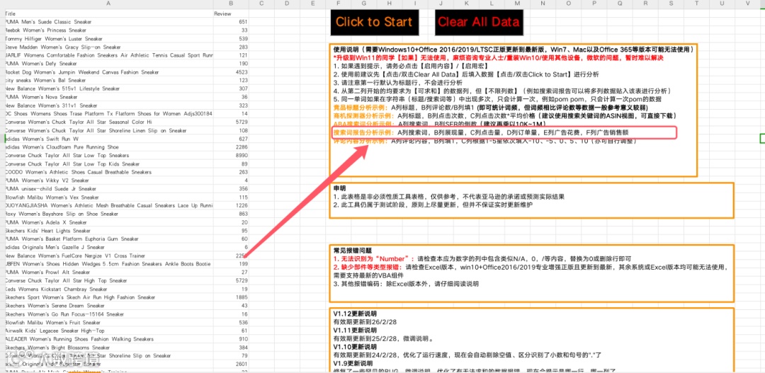 2.投放到亚马逊官方分享的《特征词分析工具V1.12.2》就可以快速拆分,需要这个表格找我领取即可。