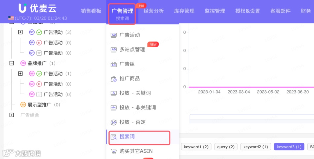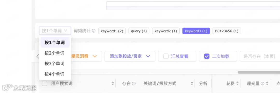 3.点击特征词,就可以看到对应的广告数据进行分析