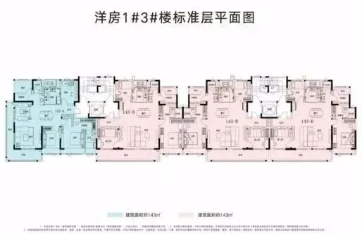 洋房建筑面积约143㎡户型,一个是方厅设计,一个是边厅设计: