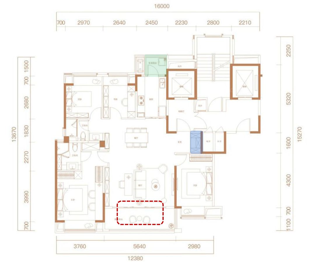 长春地铁万科紫台建筑面积约145㎡户型,一进门就看到宽敞的大方厅,约6米面宽,LDK一体化设计,中西双厨,双明卫,不仅采光通风好,整个空间还可以让家人和朋友充分互动。