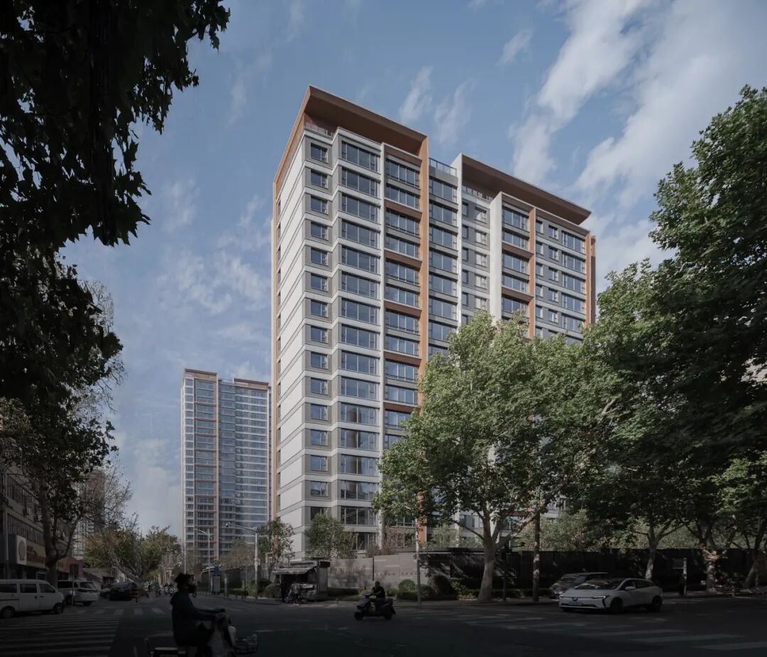超大窗墙比的设计使得每一户住宅都仿佛成为了一个观景平台,将外界的城市景观和内部的私人世界紧密相连。一边是淮海路繁华都市景象的生动展现,街道上的车水马龙、霓虹闪烁,以及行人匆匆的身影,构成了充满活力的城市画卷;