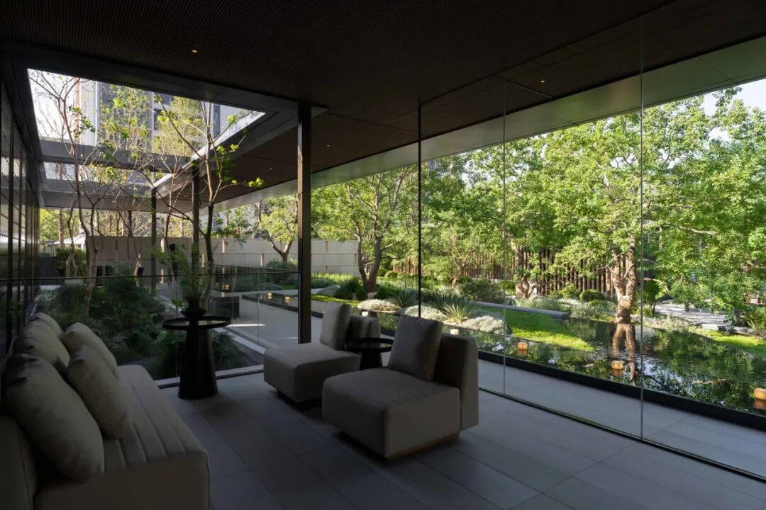 另一边则是占地约2000平方米的中央景观区,这里绿意盎然、静谧优雅,宛如城市中的一片绿洲。这种动静结合的空间布局,完美诠释了顶级生活的定义,使居住者能够在繁忙与宁静之间自由切换,感受到生活的多元魅力。