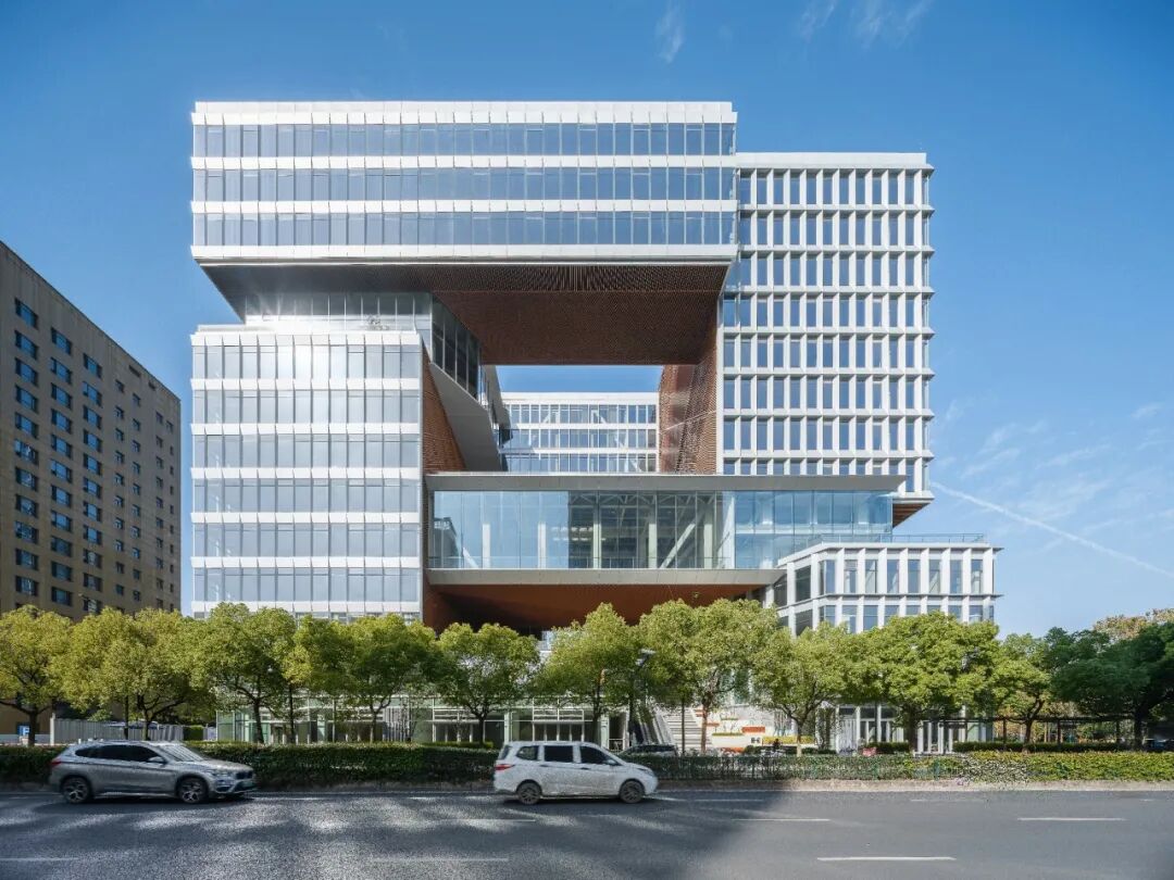 杭州开物创新大厦位于古墩路与申花路交叉口,是杭州城西最后未开发土地之一,紧邻浙江大学紫金港校区东门主入口,靠近地铁2号线虾龙虶站,而周边多为传统的办公楼和住宅区。作为城西及浙大的地标门户建筑,项目综合了办公、零售、多层停车场、展览空间和广场等多个功能,旨在为周边企业、学术机构及社区提供一个全新的知识交流和互动平台。