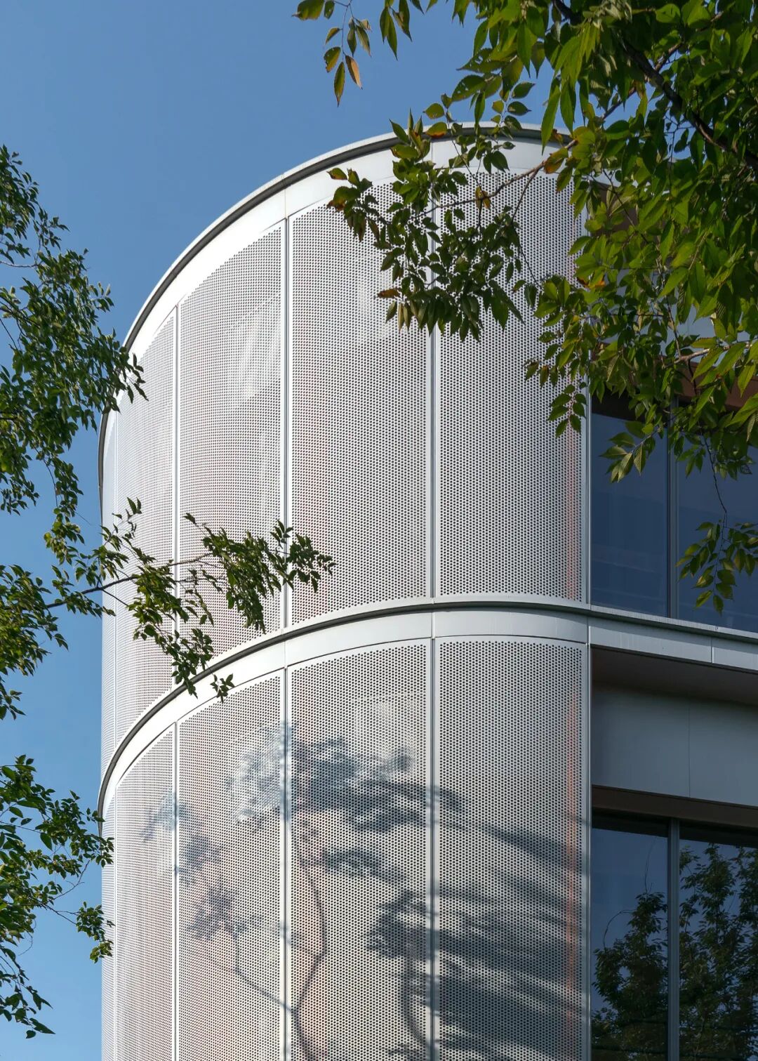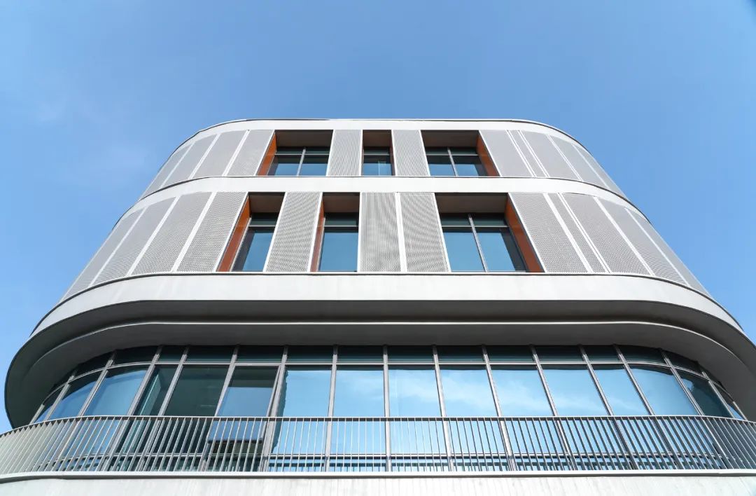 材料:击孔铝板(广州廓鑫)、清水混凝土涂料(SKK)、铝合金门窗(佛山凤铝)