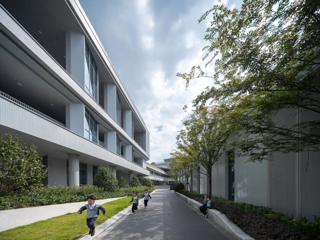 小学与幼儿园并非完全割裂,景观通廊是南侧景观带的延续,也是成长的纽带空间。