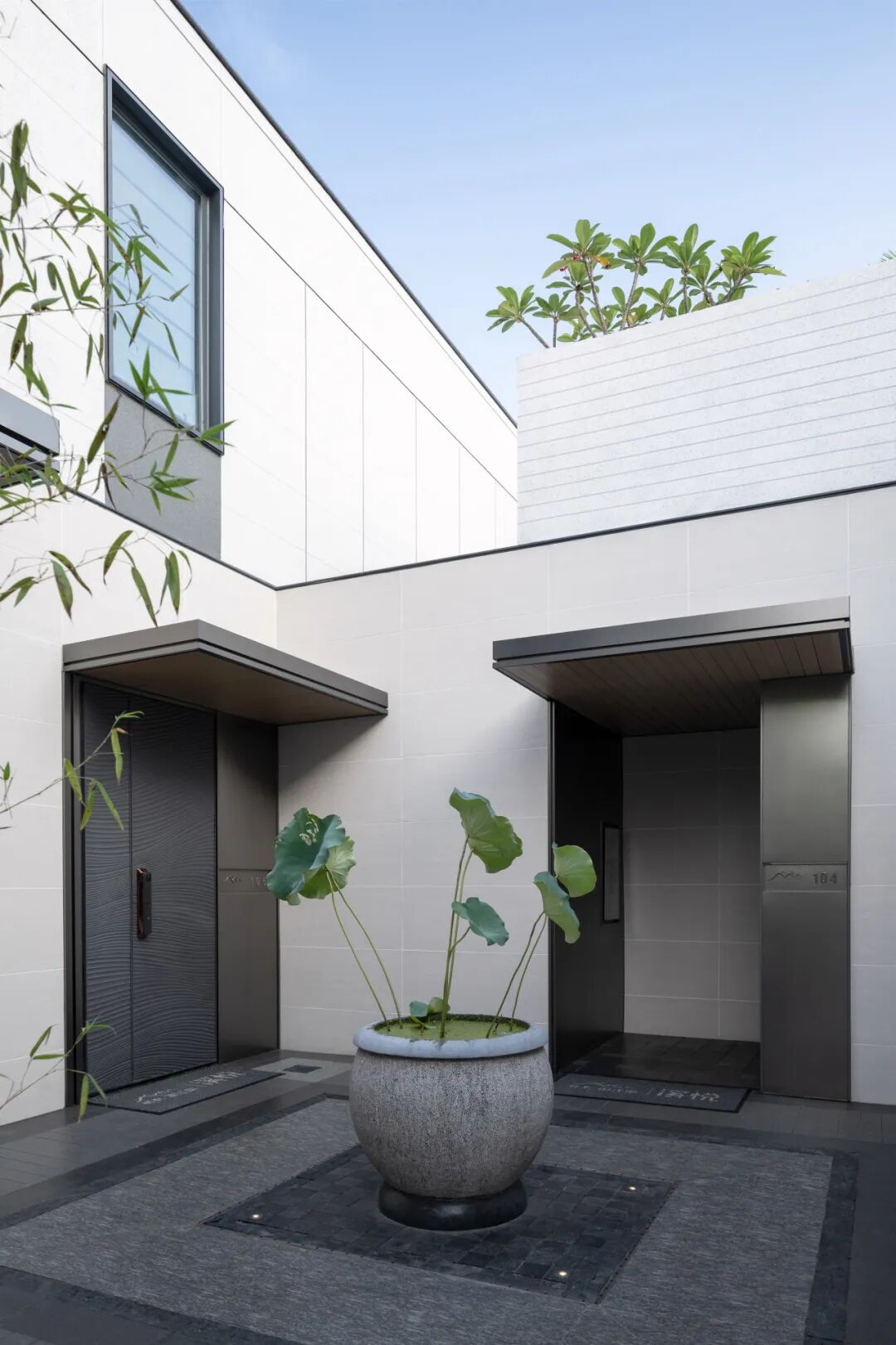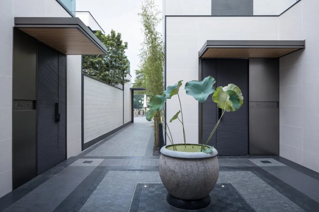巷道入口和四户归家入户的仪式感在设计和材料效果上也是进行了多轮方案比选,各处空间,被干净利落的设计线条所区分,将细节与精致感做到极致,石材分缝、不同材料交接,收口处理的用心打造,耐看也经得起细看。
