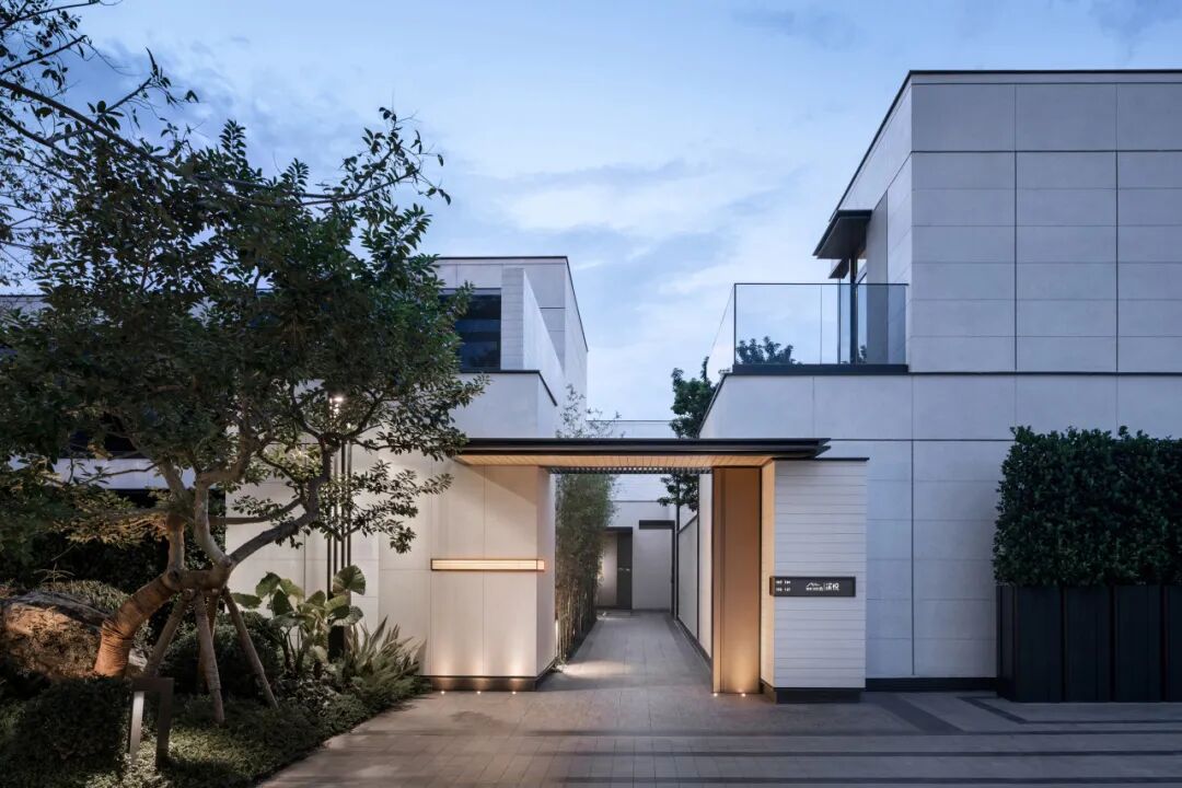 保利御江南别墅实景展示区,设计师在有限的土地资源下通过精妙的规划和巧妙的布局,实现了节地模式与奢华生活品质的完美结合。在这种设计理念的指导下,庭院面积得到了最大化的利用,展现出超越传统空间限制的灵活性与创新性。