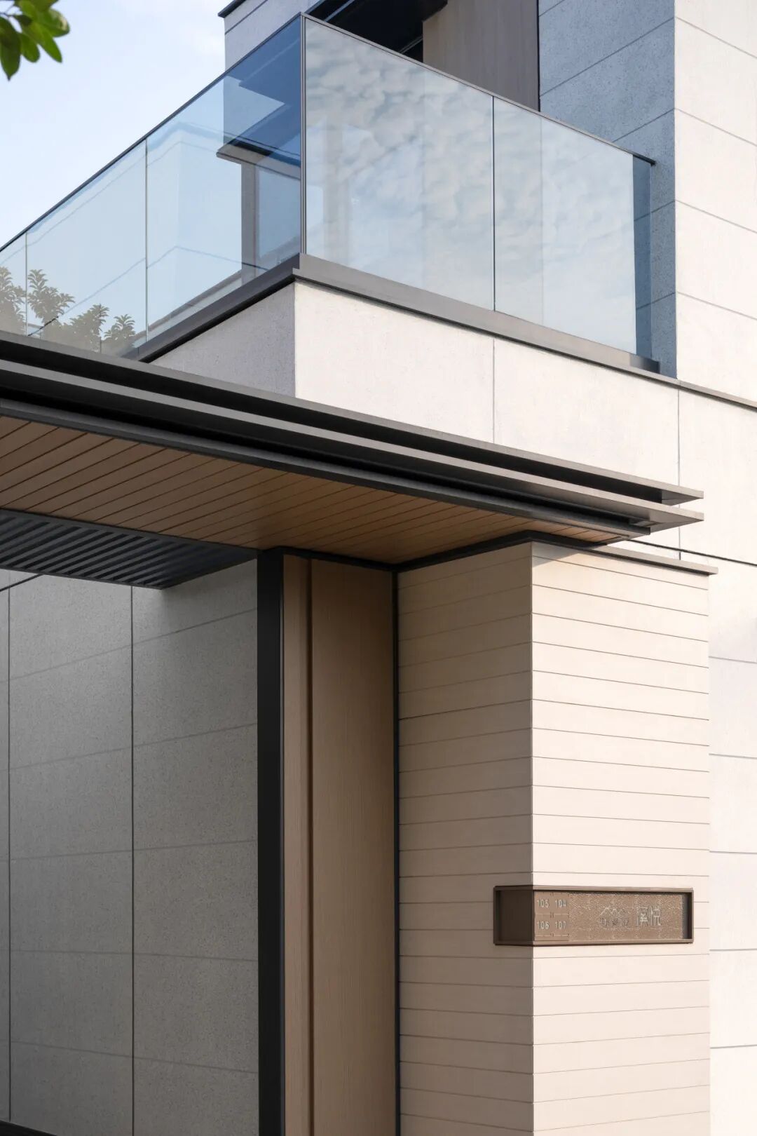 设计师在立面细节的刻画对各种材料的落地效果也是精心把控,多次实地巡场,不仅对材料本身的花纹与质感有要求,也坚信分缝是外立面设计中尤为重要的环节,更在分缝处理时也下了一番功夫。