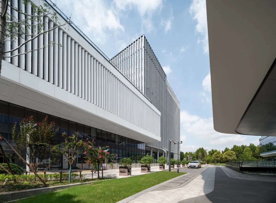 而塔楼在规划限定位置插入裙楼之中,并在朝向庭园内部和地块西侧直接落地,使塔楼的形态修长挺拔。在庭园的内部,更加着重于强调企业的独立性。