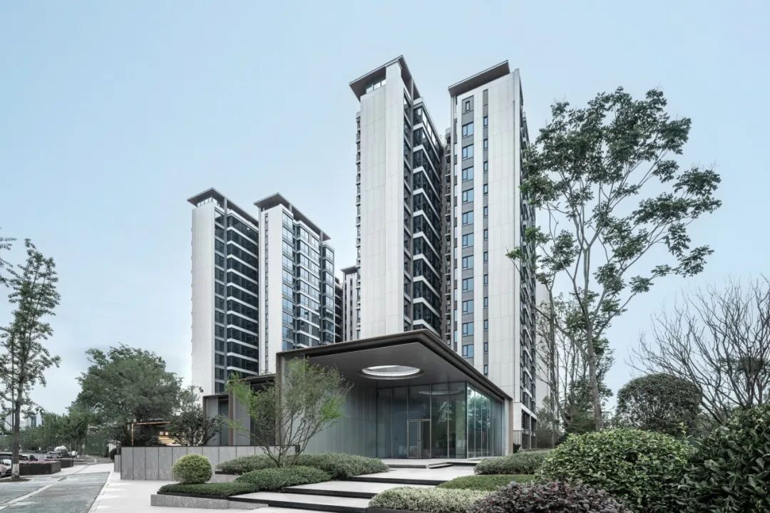 项目以简洁硬朗的线条为标志性立面元素,勾勒出挺拔且清晰的建筑体量。采用公建化建筑立面与城市立面高度融合统一,构建着更具魅力的城市天际线,为天府新区生态大动脉和高端宜居走廊增色添彩。