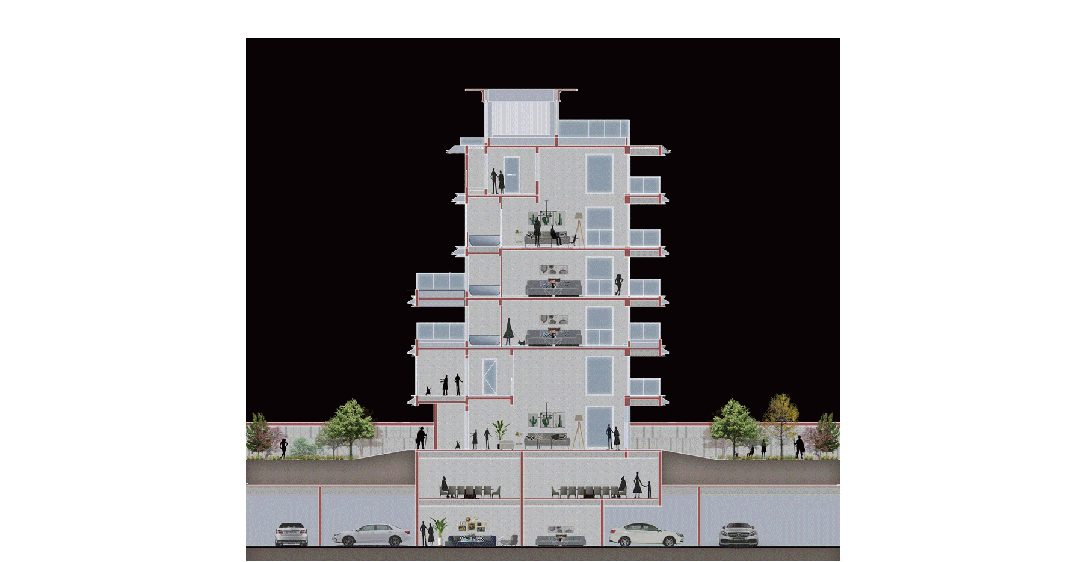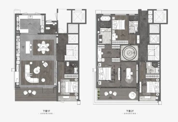 亮点一,“五独墅级产品”,下叠产品和上叠产品均设计为独立入户,独立庭院,独立入户电梯,独立地下附赠空间,以及独立车库,实现了土地价值及地下空间附加值的最大化。