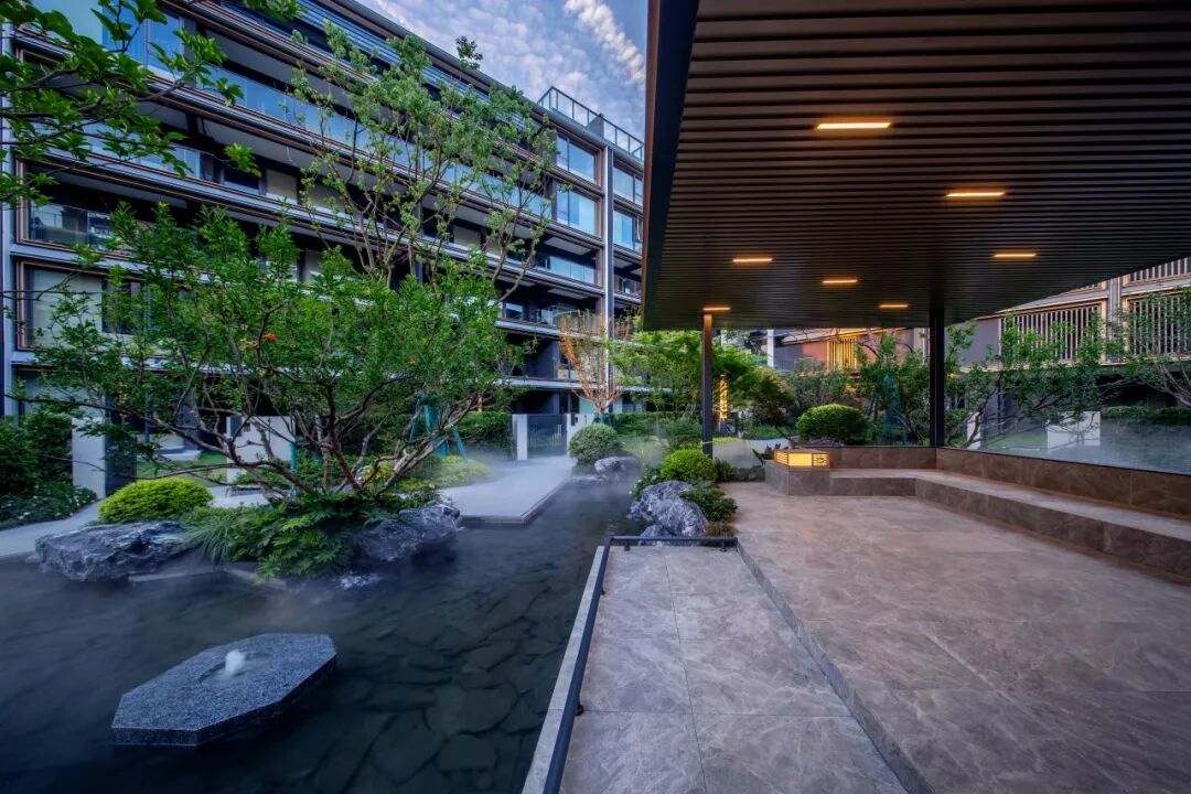 整体基底抬高后,下叠户型拥有了182㎡的一线湖景庭院,该户由沿湖景观驳岸入户,体验感拉满;上叠户型则设置了四层及五层近百平米的全景露台空间。沿湖布置的“观湖墅”建筑高度低于内部庭院叠墅产品,使得住区内部的顶层露台均获得了观湖视野,实现了景观资源利用的最大化。