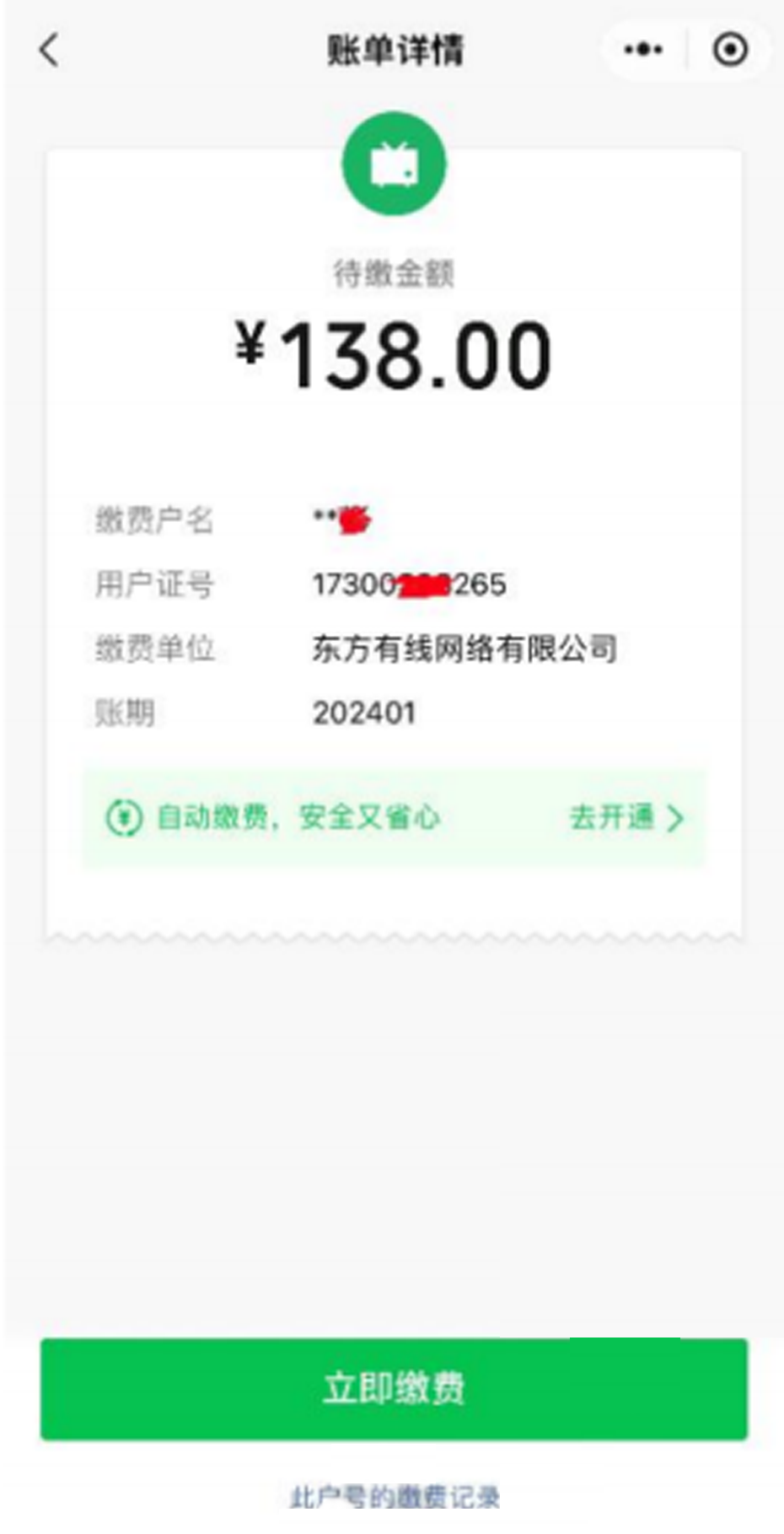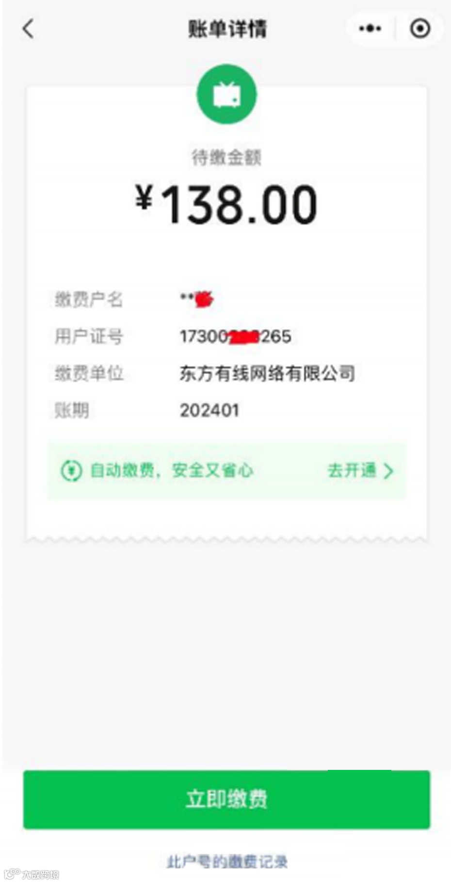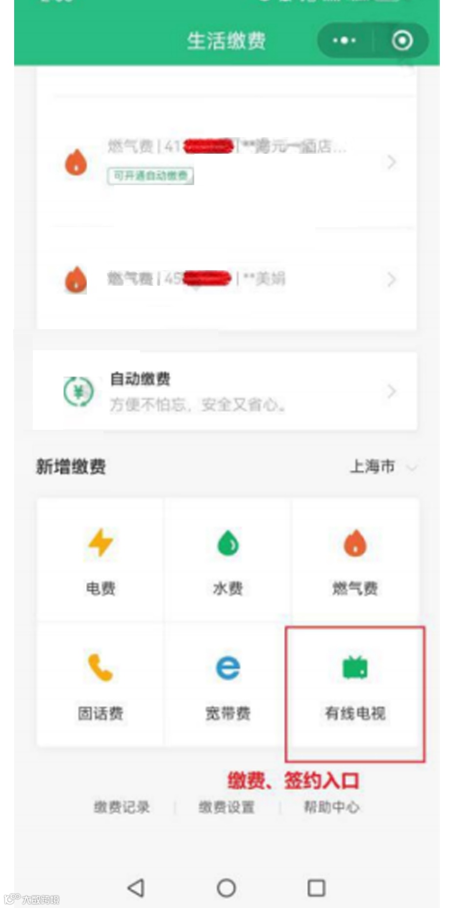 点击微信 “生活缴费”,进入 “有线电视”列表或者“新增缴费”入口