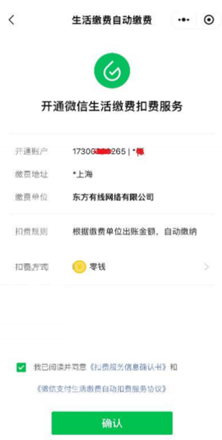 点击“去开通”,进入签约界面,在确认“扣款方式”及用户证号、姓名后,勾选协议,点击“确认”。