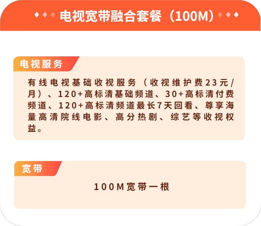 电视宽带融合套餐(100M)原价846元,双十二钜惠仅需510元!