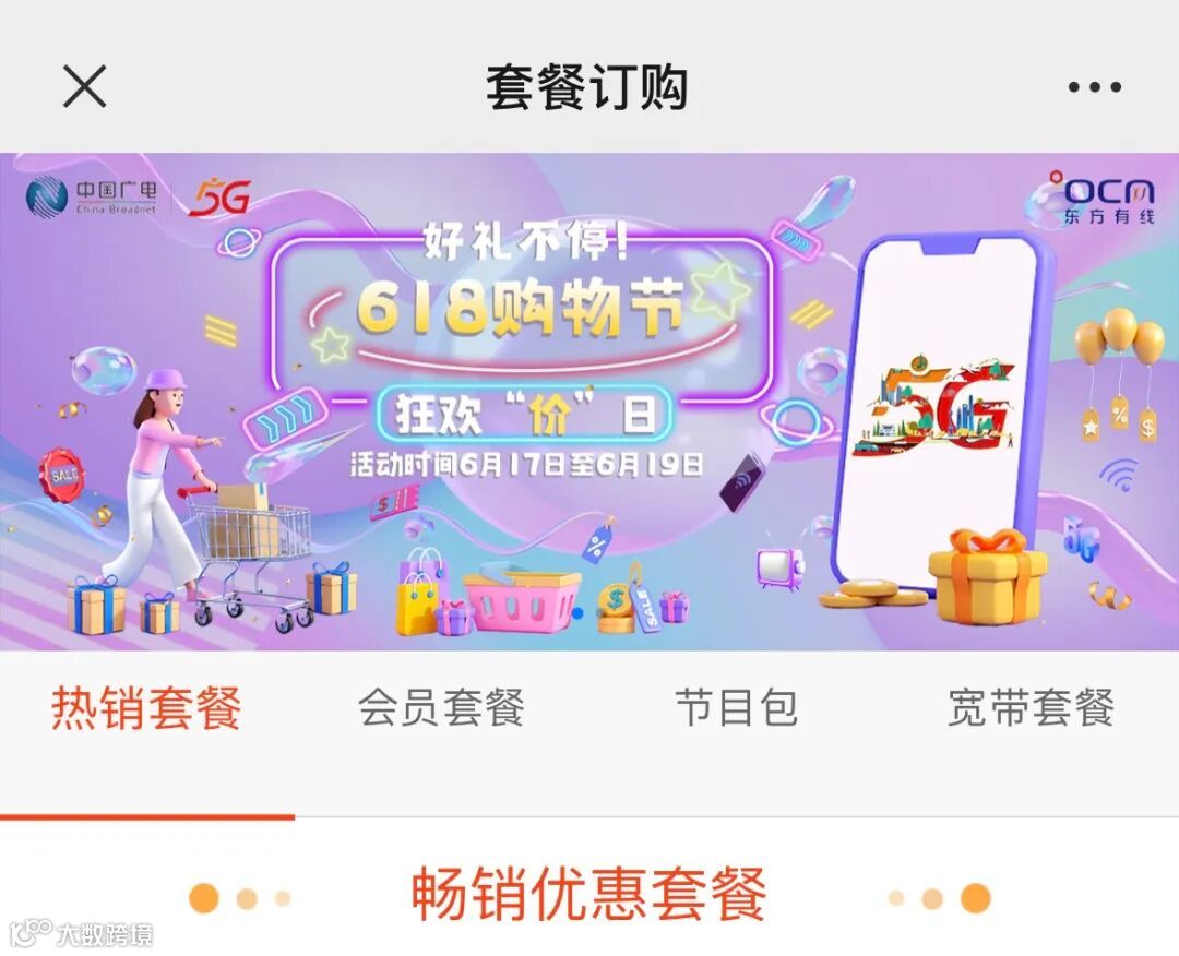 关注东方有线官方微信公众号-有订购-优惠订购-618购物节活动专区。