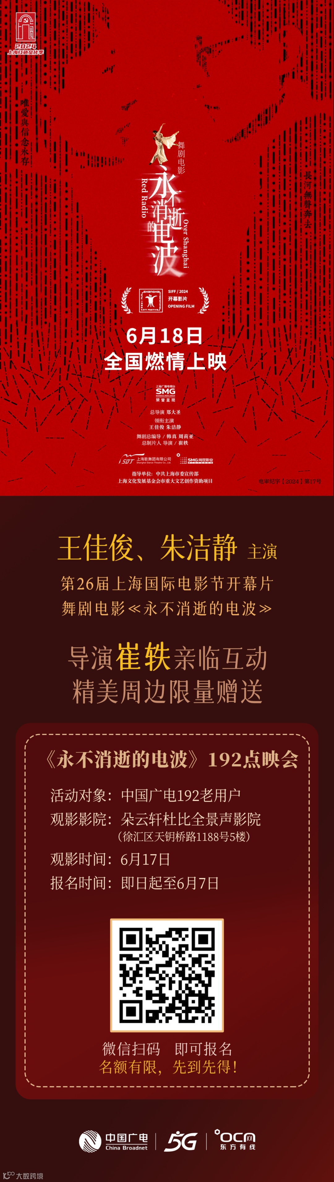 你对电影版《永不消逝的电波》有什么期待?想一睹朱洁静、王佳俊老师耀眼的舞蹈风采吗?点映会将于6月17日18:30开始,现场还有电影导演崔轶亲临互动,不仅能提前一天看到精彩的电影,还送舞剧电影纪念票根哦~