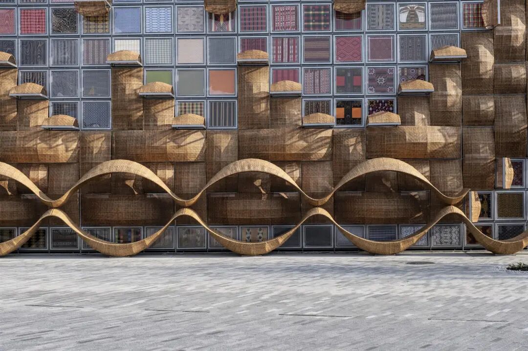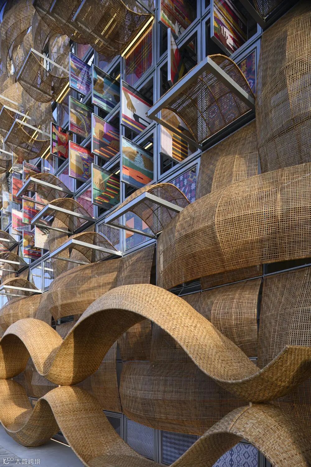 The pavilion's design also emphasizes collaboration, incorporating contributions from various weaving communities in what is described as the largest-ever collaboration of Filipino weavers for a single project. Artisans from 18 regions contributed to the pavilion, creating intricate handwoven textiles and rattan panels that embody local traditions while showcasing sustainable materials like abaca, pineapple fiber, silk, and bamboo.