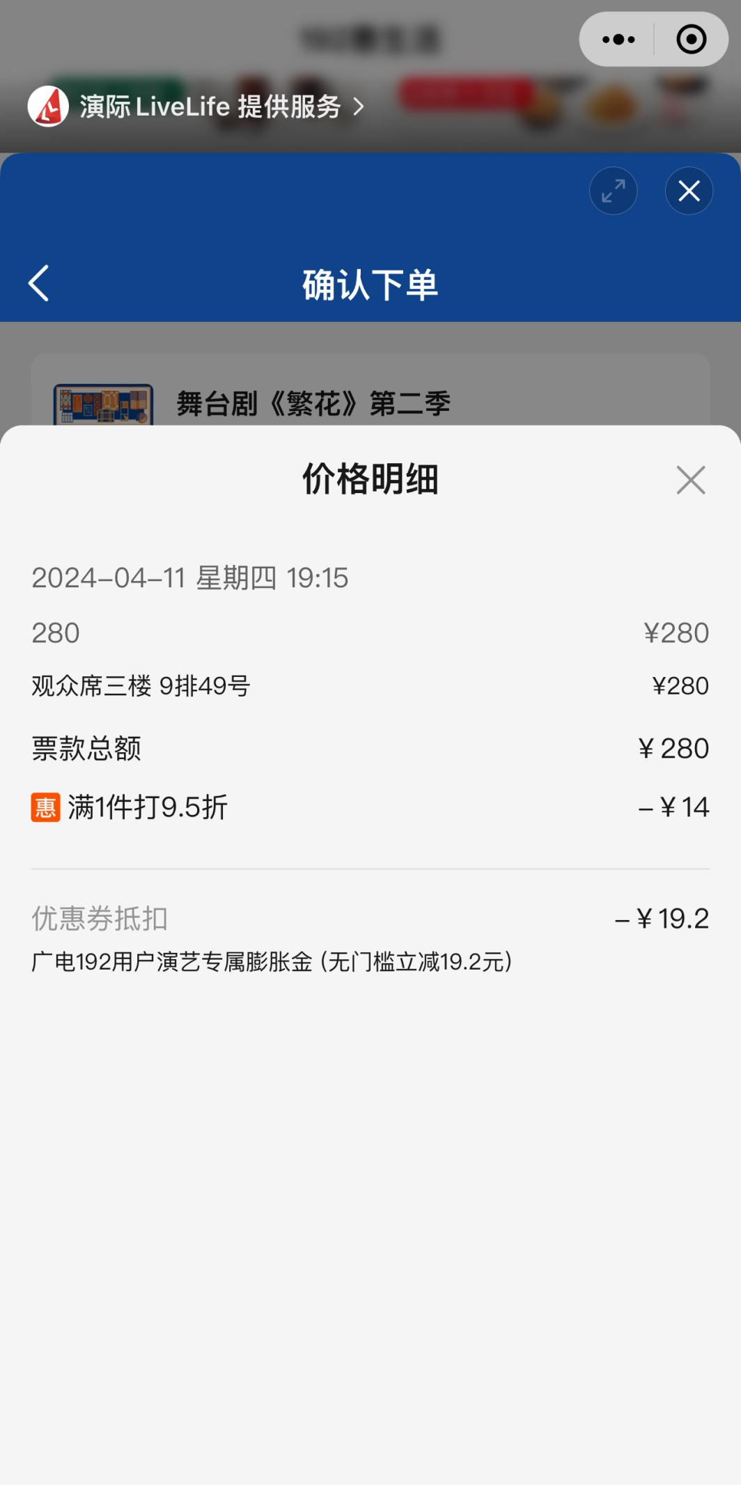 1月8日舞台剧《繁花》第一季开票