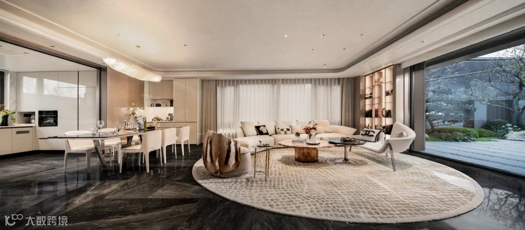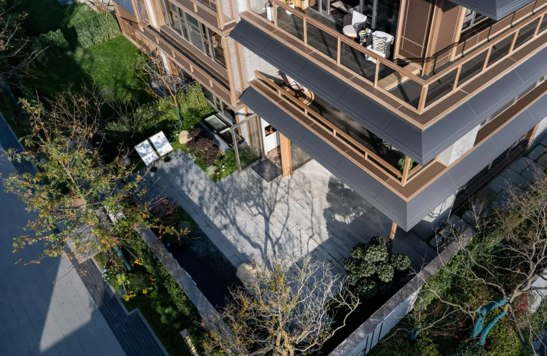 将传统繁复的中式化繁为简,将中式复杂的元素高度萃取,平直大气的东方屋檐下,填充进大面的玻璃立面和开阔的露台,把如镜般的太湖水面,延伸为建筑的立面,将来自大地的景观,幻化为露台上的空中庭院。湖面和立面相互映照,花园与大地彼此生长,一个伫立在湖岸的“玻璃盒子”,仿佛时代的透镜,折射出轻盈、现代、自然的大宅之美,建筑无声地融入湖岸,悄悄生长,感受万物生长与岁序更替。