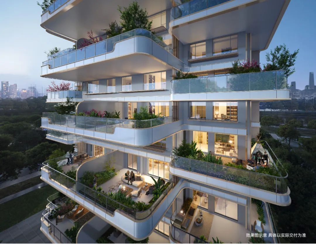 仪式场景;最大达19米南向四开间,酒店式套房设计,探索心灵回归和自我释放的情绪空间;270°巨幕大阳台,装得下“植物爱好者”的私家花园……