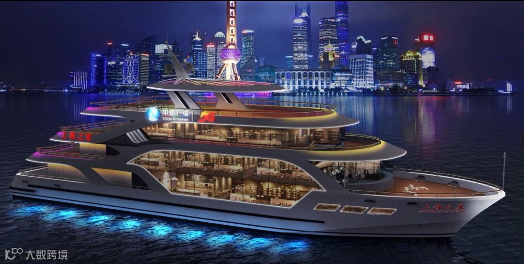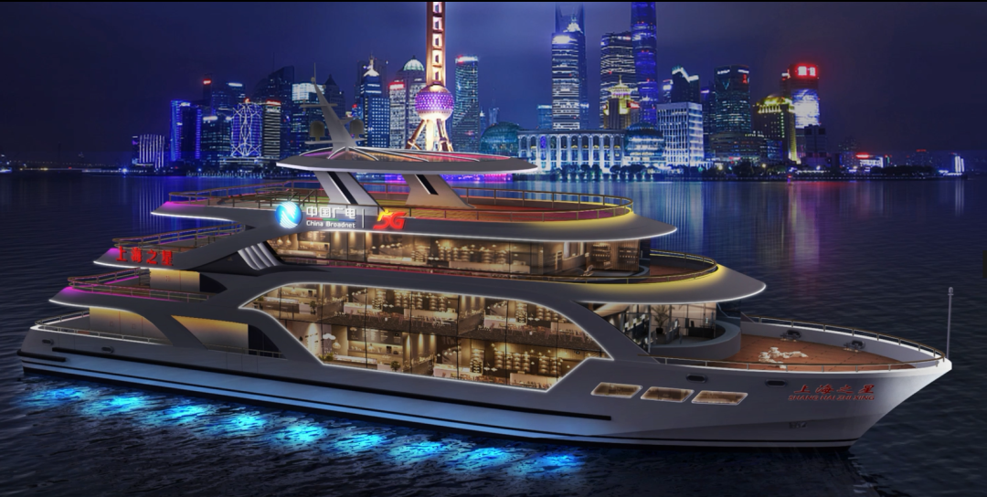 在本次合作中,上海广播电视台(集团)将发挥旗下多元化的全媒体平台优势,全方位、多渠道扩大中国广电品牌和产品的曝光量。作为双方商业创新合作的一项亮点,“中国广电5G”冠名了上海广播电视台旗下东方明珠首艘五星级标准豪华游船——“上海之星”。该游船总长约50米,可载客300人,共分四层,具备水上观光游览、商务活动及婚庆庆典等综合功能,现已全面覆盖中国广电5G网络信号及无线WiFi,将网络传输通道与岸边基站作无线耦合、实现信号回传,为后续打造江上沉浸式互动演艺、数字多媒体空间、新闻发布直播、AR灯光秀等新体验、新场景打下坚实的网络基础。