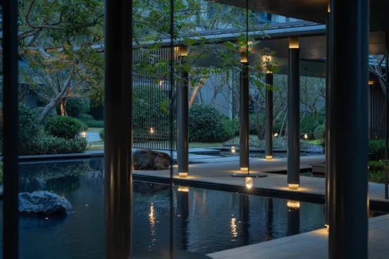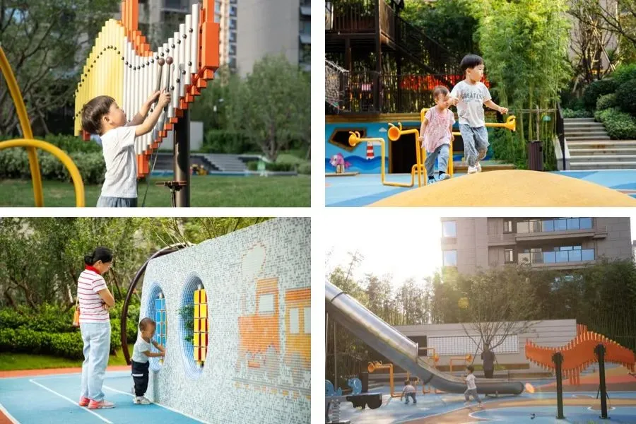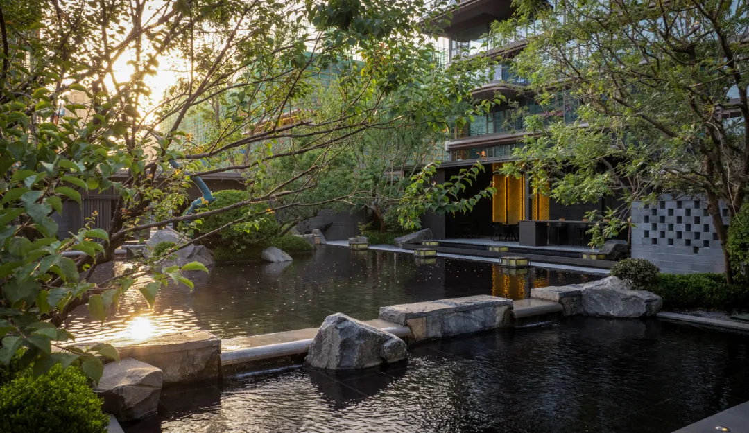 佑园景观营造投入是新东升传统项目的2 - 3 倍,每栋楼前风景各异,溪水潺潺、乌桕树阵、竹林、九曲回廊、亭台楼榭等。社区景观和公园景观相互渗透,置身其中仿佛江南园林一般。
