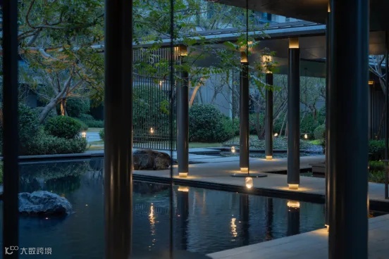 从15米宽的社区大门到一进院落60米长的山水界面;从入口大堂内的一方茶室会客空间到二进院落的四水归堂中庭空间;从三进院落内近3米高差的山水庭院到四进院落近500平米的超大景观湖面;从五进院落的山水游廊到六进院落近700多平米的儿童活动空间等,进一步提高生活体验的丰富性。