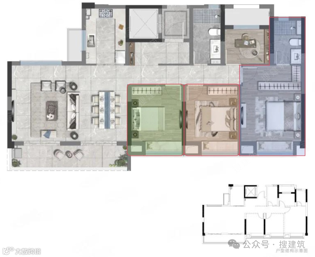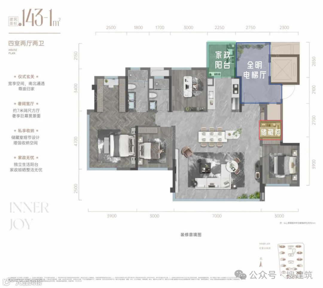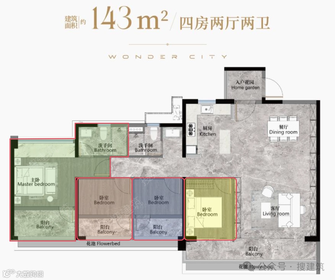 本期搜建筑将为大家详细解析,143平米面积段户型的大面宽设计。