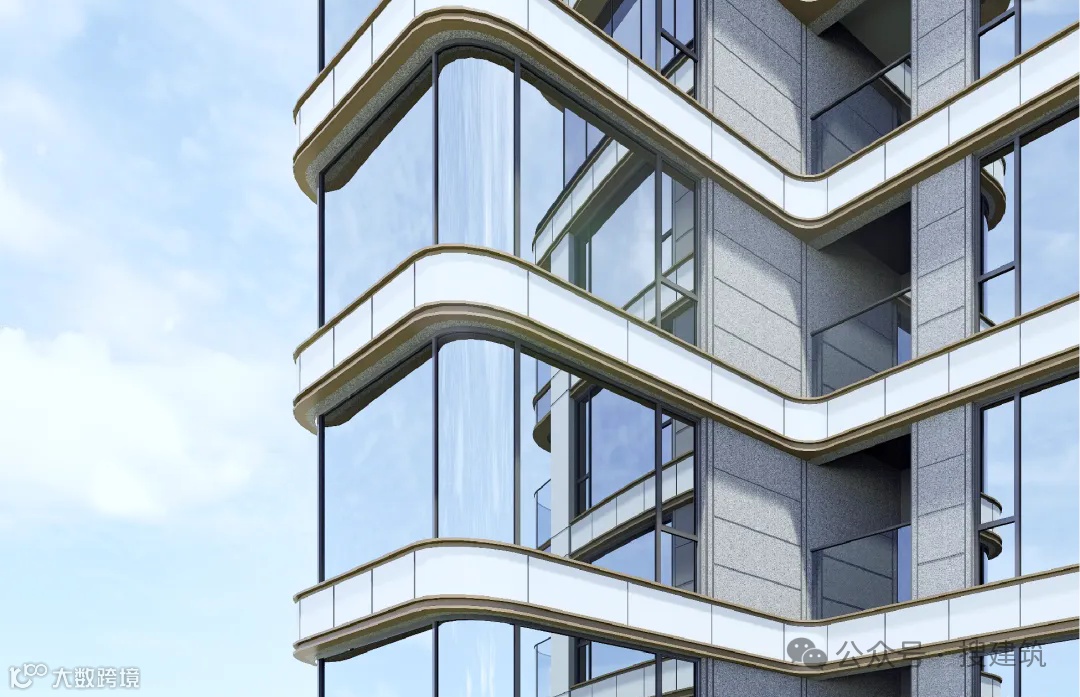 外立面造型用了宝格丽酒店经典的格网构图+晶莹剔透的塔冠的形式,全景视窗,尽显豪宅立面的高端。