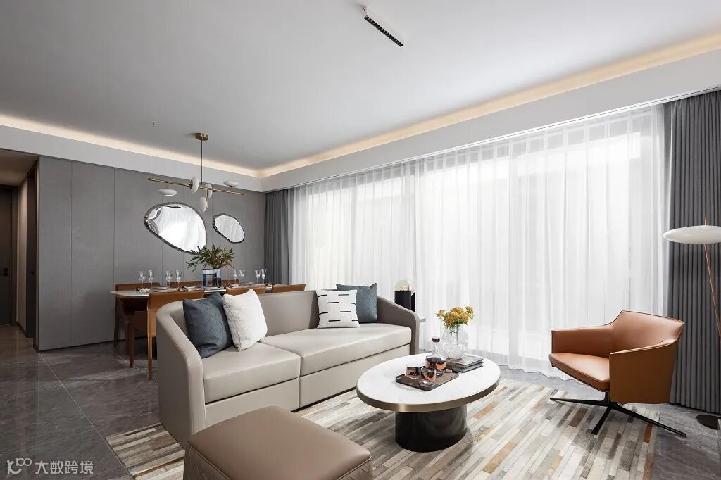 大面宽客厅犹如一面光滑巨镜,吸纳折射更多光线入室,这也意味着,同等面积之下,房子整体采光效果更优越,让光成为生活空间永远的主角。