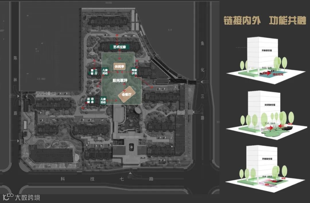在一次次地自我迭代中,锦海棠在公区打造上呈现给业主的是一个功能丰富、动线清晰、深度融合的「无界场景」。
