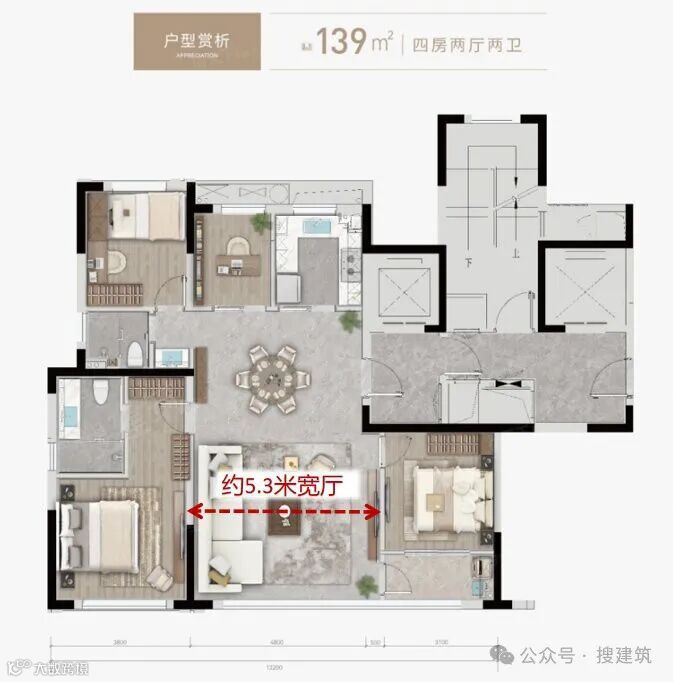 在户型面积段里,139㎡属于标志性的户型面积,究竟能实现怎样的突破?