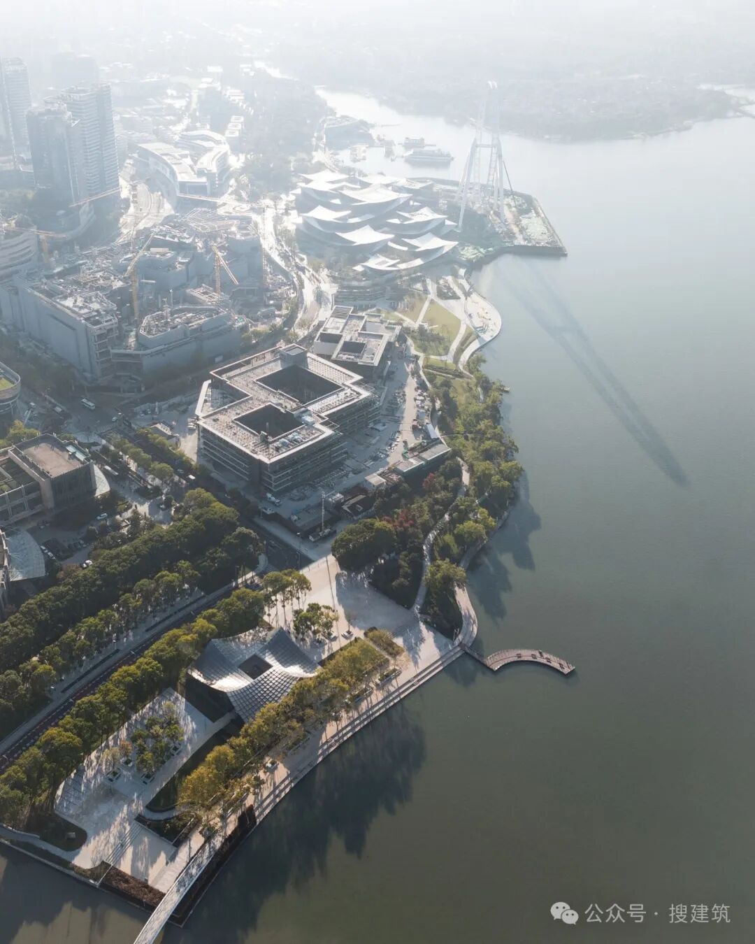 BIG – Bjarke Ingels Group has completed the 1,200-m2 Jinji Lake Pavilion in Suzhou, China. Situated on the Jinji waterfront, the pavilion offers a space for public gatherings and hospitality and is one of the eleven permanent pavilions developed as part of the City's initiative to create a vibrant and welcoming promenade.