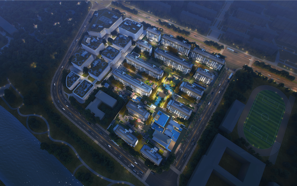 以“双叶绽放”,赋予建筑全维度审美,三色铝板材质,配以全景玻璃幕墙,燕尾锁、锦鲤纹等专属东方纹饰点睛,赋新建筑东方内涵之美。