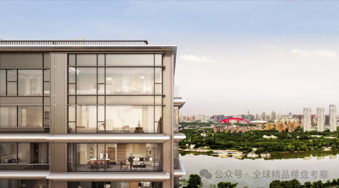 设计细节上,相较于传统建筑的处理方式,其独特的“四感融合”立面匠造工艺,精致感、细腻感十足,让建筑成为艺术。约0.48超大窗墙比,营造出建筑的轻盈、透亮和灵动感,IMAX级全景落地窗+270°转角窗,拉近了室内外的距离,带来宽幕无界的观景视野。