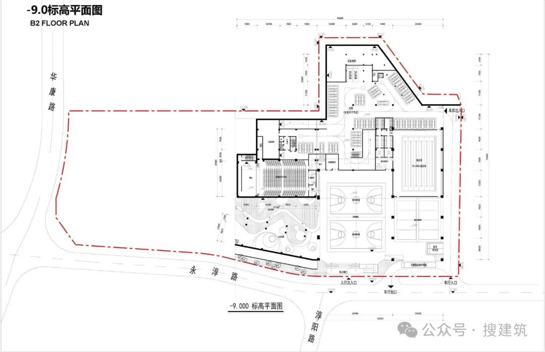 The sports field is elevated to extend the valley garden, thereby expanding the children's sports field area and incorporating a sports hall for use during inclement weather. The entrance to the auditorium is ingeniously hidden within a cave-like structure, reinterpreting the concept of "another world" in a child-friendly manner. The campus is equipped with a green sky observation deck, an aerial walkway, and a rich multi-functional space, forming a carpet-style campus ecological network.