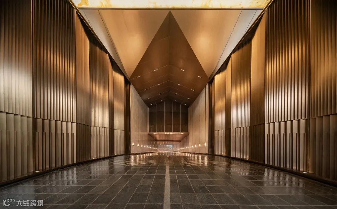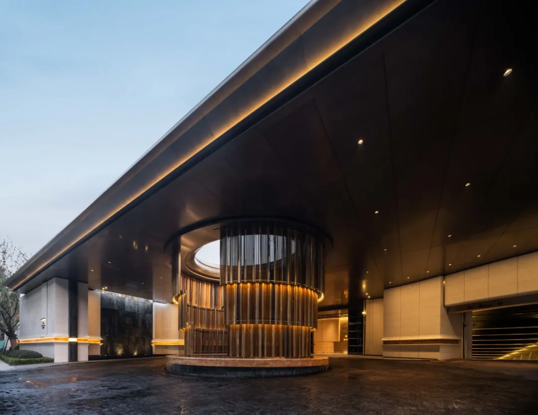 作为“建筑第一大堂”的车库部分,金陵月华躬耕深研,设计约7米净宽地下坡道入口,与小区大门同高,留出了足够的顶部空间,顶部中式折叠金属板华盖设计,呈现华贵归家礼仪。
