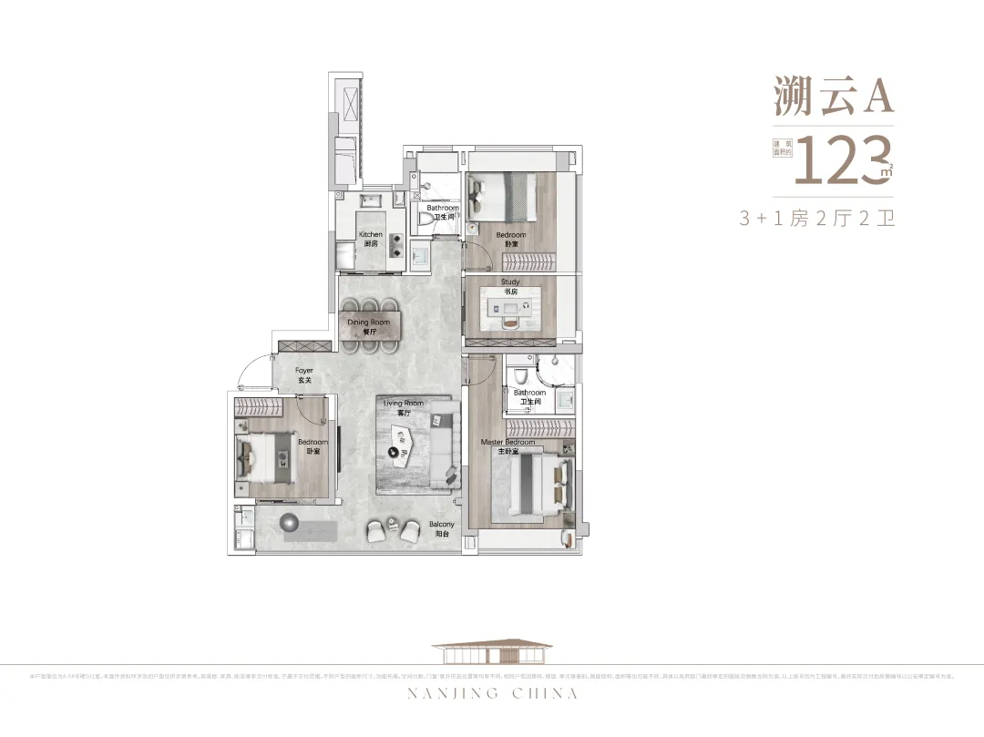 项目打造建面约123-182㎡诗意东方低密大宅,以全系3+1房,南向奢阔阳台&宽境飘窗