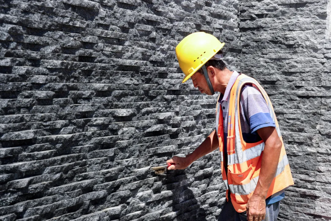 建筑的艺术,源于精细化的施工。哪怕是冰冷的石材,只要用心,也会变得赏心悦目。在245平米的水系小天地里,池底约97平米,但就是这97平米的面积,却让金沙的工程师“挠破了头皮”,整整用了10天才施工完成。
