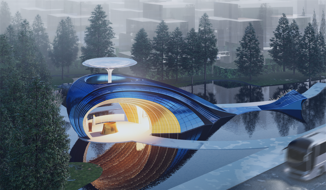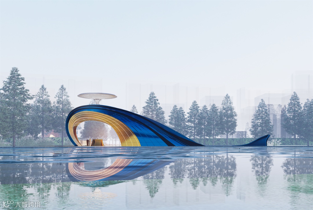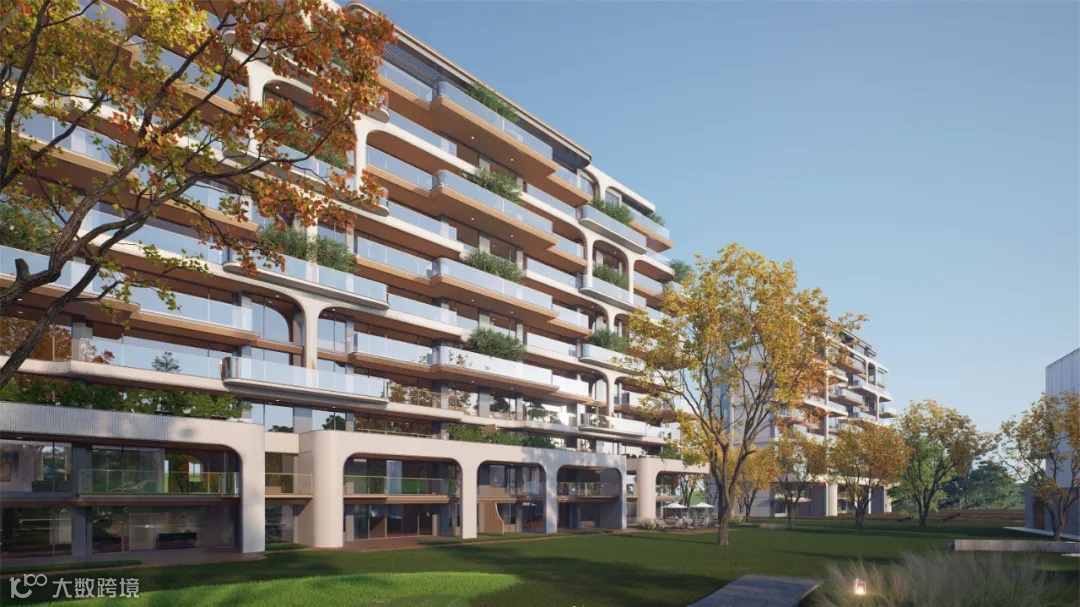 项目高层立面设计上,以曲线为“引”,自下而上生长的线条交错、融合、延伸、无边界,最终在三维尺度上形成“超流线”,呈现出流畅而富有张力的曲线序列。